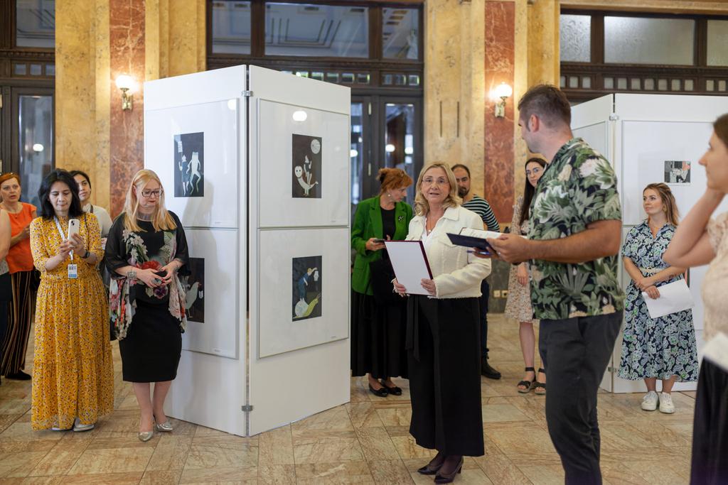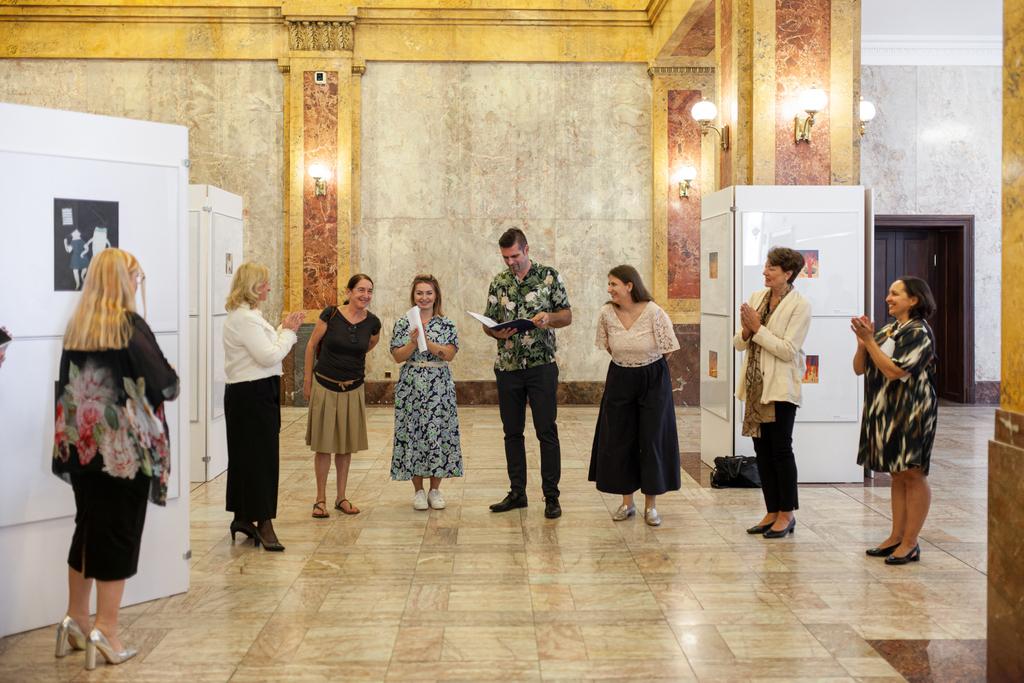 The connection of art and literature, the connection of awardees. The Hall of Fame exhibition is connected to that. The world of illustrations will be revealed by the winners of the Grand Prix BIB 2021 and the Hans Christian Andersen Prize 2022 - Elena Odriozola, winner of the BIB Grand Prix 2021, Suzy Lee, winner of the Hans Christian Andersen Prize 2022 for illustration, Marie-Aude Murail, winner of the 2022 Hans Christian Andersen Prize for literature.