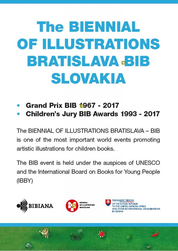 Dates of event : from: 29. 4. 2019 to: 10. 5. 2019 Venue : UN - Palace od Nations, GENEVA, SWITZERLAND Gallery UN - Palace od Nations, GENEVA, SWITZERLAND ILLUSTRATORS AWARDED AT THE BIB 2017 JUVENILE JURY PRIZE OF BIB 1993 – 2017 Gallery ILLUSTRATORS AWARDED AT THE BIB 2017 JUVENILE JURY PRIZE OF BIB 1993 – 2017 UN Michael Møller, Francesco Pisano, UN Library, Igor Kučer and Saša Broadhurst-Petrovická Saša Broadhurst-Petrovická ILLUSTRATORS AWARDED AT THE BIB 2017 JUVENILE JURY PRIZE OF BIB 1993 – 2017