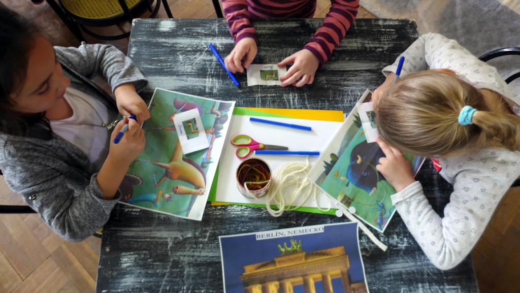 A book workshop for children from Drahovce, with a story from the book An Egg Went Wandering published by Buvik, and creative play.