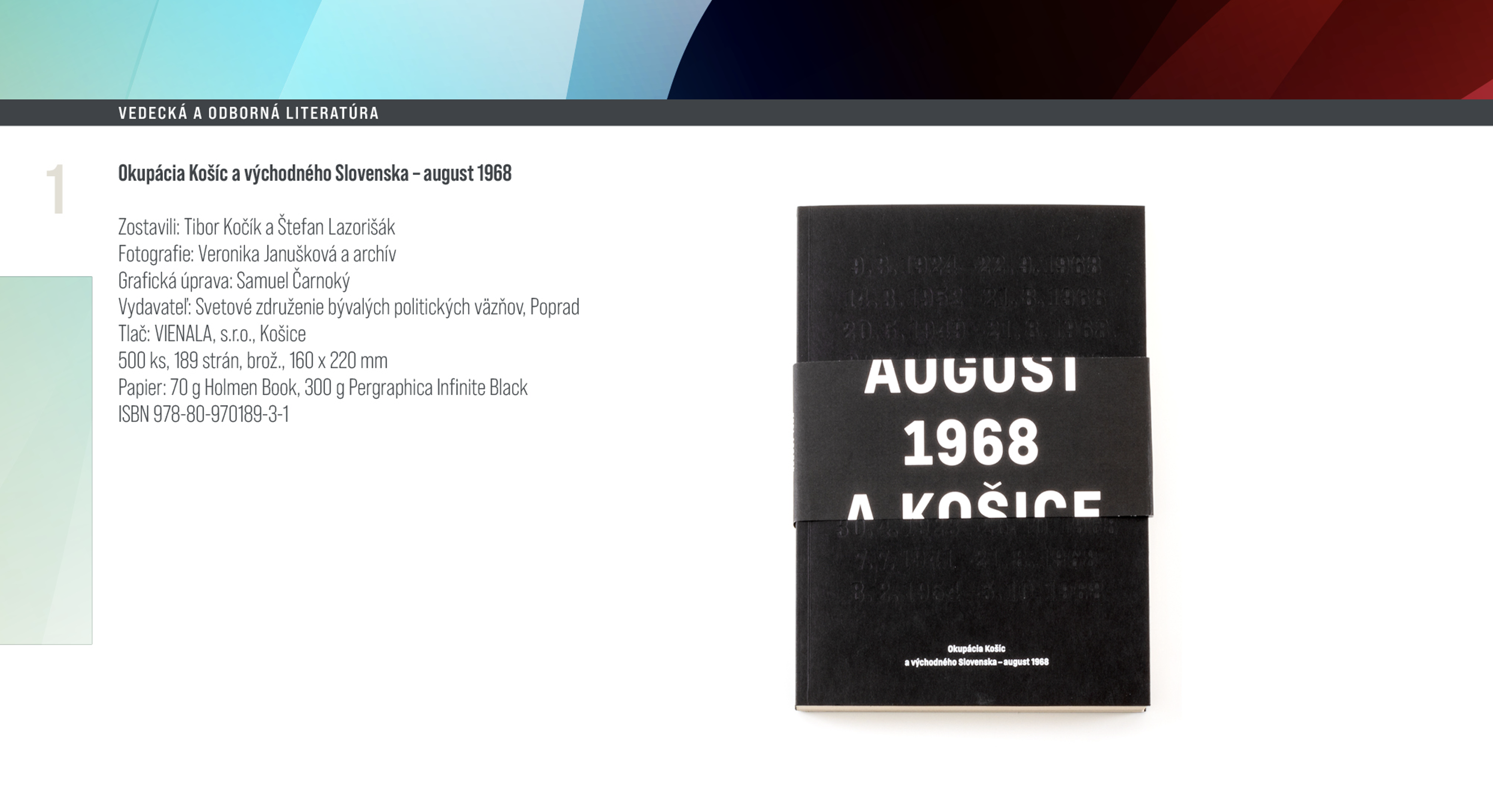 Il. Martin Augustín, fot. kolektív, graf. úprava Barbara Baloghová, vyd. IKAR, a.s., Bratislava, tlač TBB, a.s., Banská Bystrica