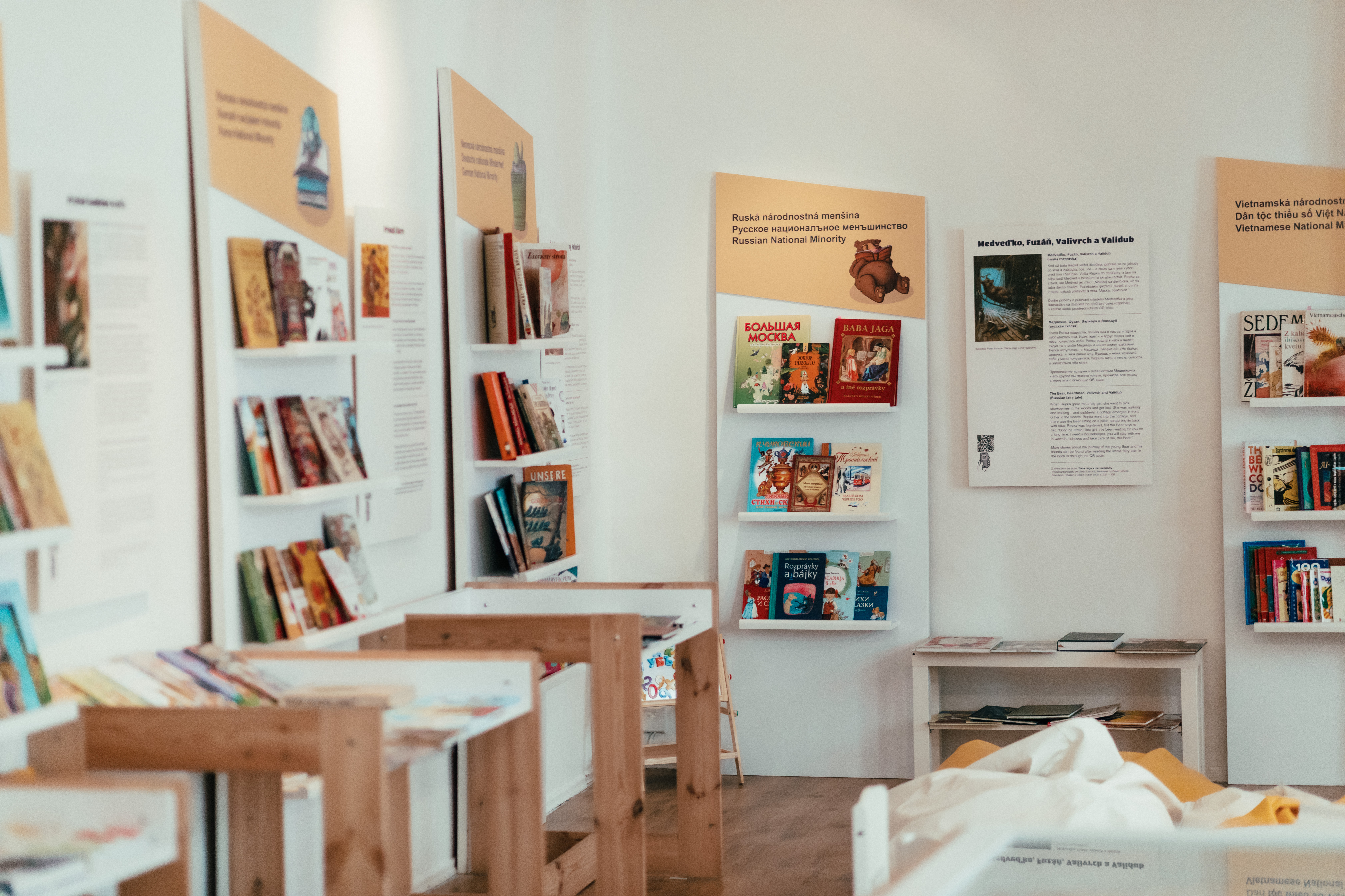 Výstava kníh a časopisov národnostných menšín žijúcich na Slovensku je komornou „oslavou“ dvoch sviatkov. Medzinárodného dňa materinského jazyka (22. februára) a Medzinárodného dňa detskej knihy (2. apríla).