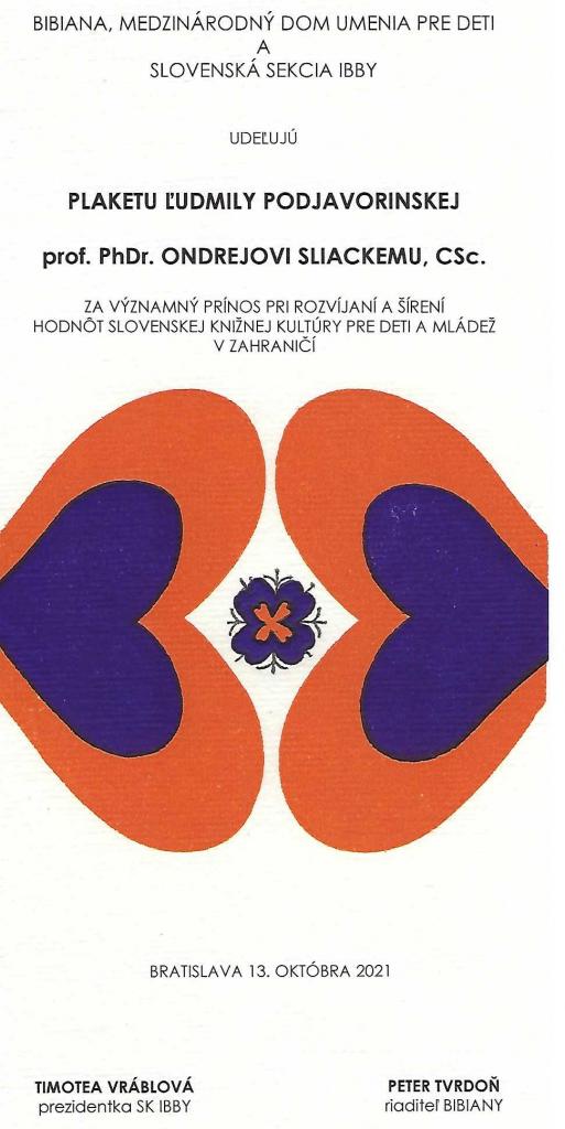 V tomto roku Plakety Ľudmily Podjavorinskej získali prof. PhDr. Ondej Sliacky, CSc. PhDr. Ľubica Ďurišinová za významný prínos pri rozvíjaní a šírení hodnôt slovenskej knižnej kultúry pre deti a mládež v zahraničí.