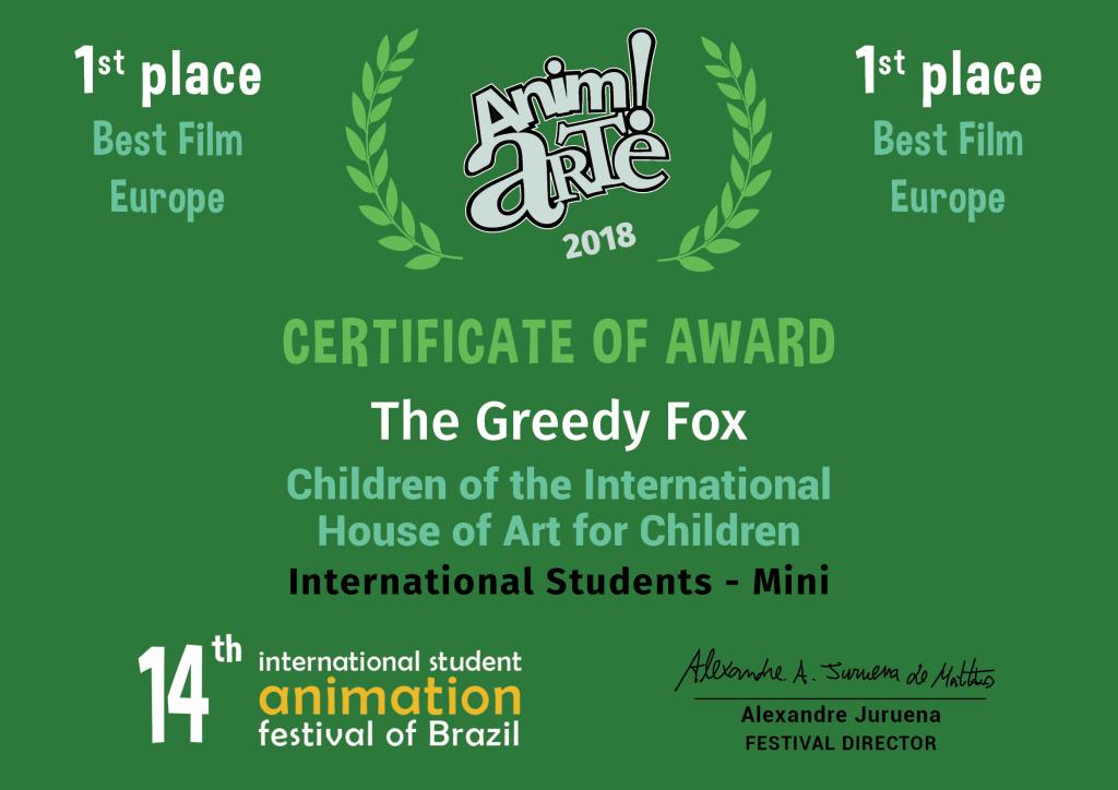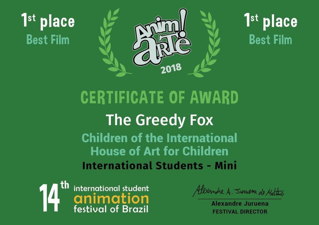 Film O maškrtnej líške získal v súťaži na 14. Medzinárodnom festivale študentských filmov Anim!Arte 2018 v Brazílii dve hlavné ceny.